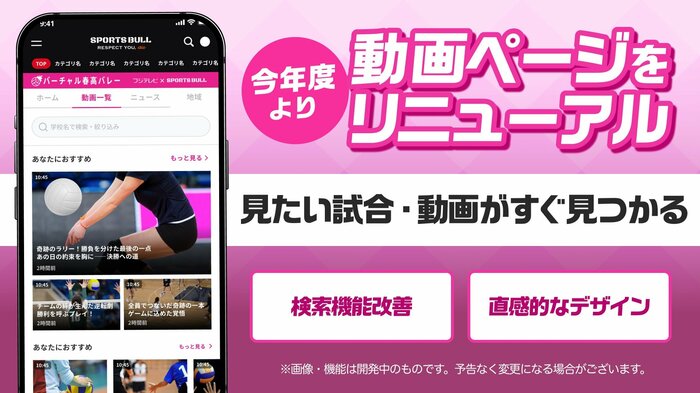 動画ページをリニューアル。「見たい試合・動画がすぐ見つかる」をテーマに、機能とデザインの両面で刷新。キーワードやカテゴリ検索がよりスムーズになり、「新着動画」や「見逃し動画」など、多様な切り口から動画を探すことが可能に。