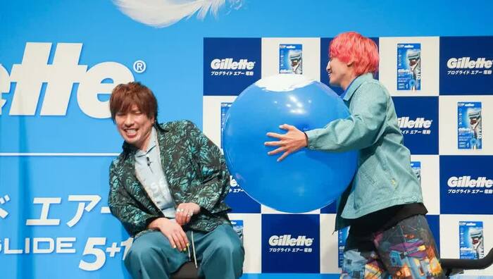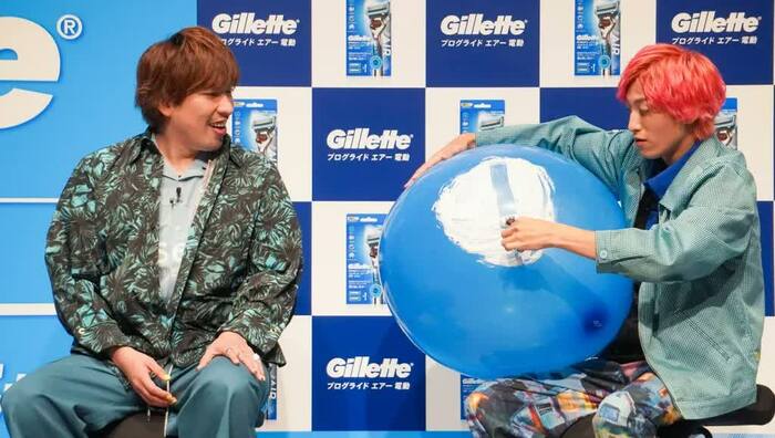 新製品がどれだけ肌に優しいのかを実証するために、兼近さんが、風船に塗られたシェービング剤を剃ってみることに。