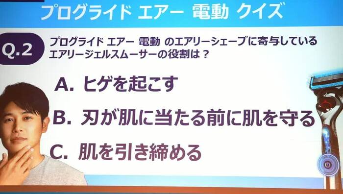 続く2問目は「新製品についている、エアリージェルスムーサーの役割は?」というもの