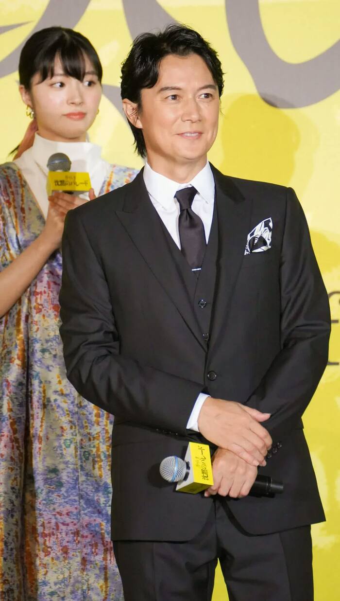 主人公である天才物理学者・湯川学を演じる福山さんは、「帰ってまいりました。コロナ禍が、まだ完全に収束したとは言えない中で、エンターテインメントの大切さや必要性を感じながら過ごしてきた2年数ヵ月でした。その中でも、こうやって皆さんと対面できて、『沈黙のパレード』という映画を見ていただけることは、本当にうれしく思います」とあいさつ。