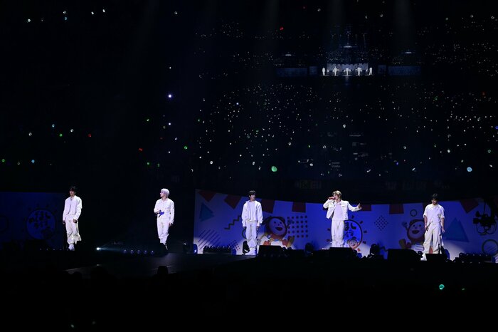 後半戦は『星の詩 [Japanese Ver.]』、『Deja Vu [Japanese Ver.]』、『Where Do You Go?』と立て続けに3曲を披露。曲の途中では、ちいかわとハチワレ、めざましくんが登場し、YEONJUNさんがハチワレの頭をなでて寄り添ったり、TAEHYUNさんがちいかわに寄り添ったりと、みんなで一緒に楽しい時間を過ごしました。