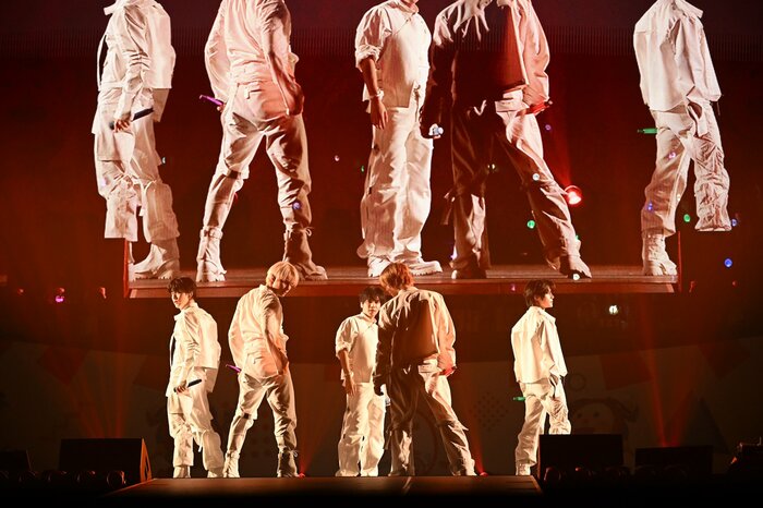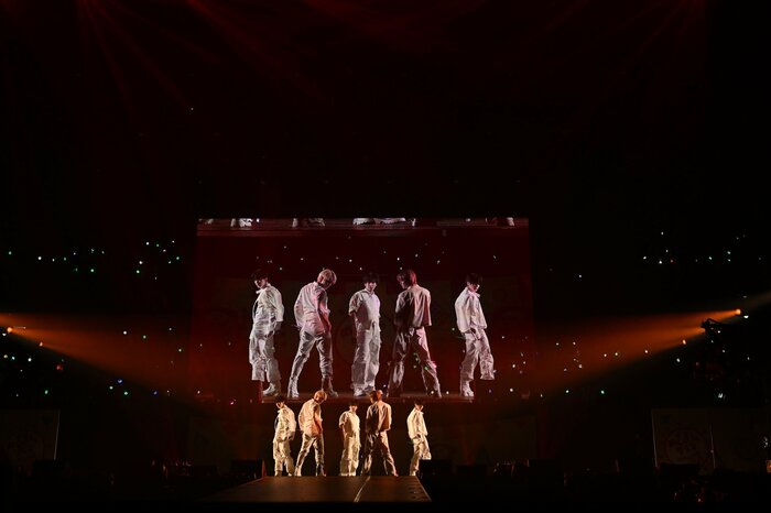 圧倒的なダンススキルと存在感に歓声は止まず、それぞれの顔がスクリーンにアップになると絶叫する観客も。間髪入れずに始まった『Beautiful Strangers [Japanese Ver.]』では、会場が揺れるほどの盛り上がりを見せ、メンバーの髪をかき上げる仕草、客席を見上げる動作のひとつ一つに歓声が上がりました。