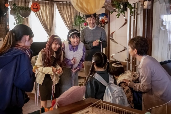 永島家をにぎやかに出迎える渉(北村有起哉)とあん(仲間由紀恵)たち
