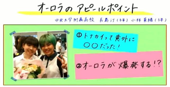 将来の夢は「NASAなどでオーロラの研究に携われたら」と話す長島さんに対し、丸山から「好きなドレッシングは?」の謎とも思える質問が。すると「オーロラドレッシングな」とすぐにツッコむ大倉。「むっちゃしょうもないこと聞いてるな!」(横山)、「アイドリングトーク」(丸山)、「もう温まっとっるわ!」(村上)と絶妙な掛け合いを見せた。
