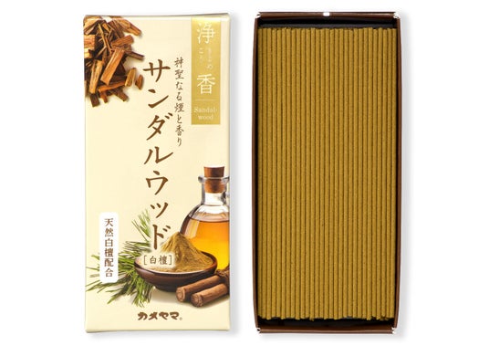 ローソク・線香メーカーのカメヤマ株式会社(本社:大阪市、代表取締役社長 谷川花子)は、香りと煙で心と空間を整えるお線香「浄香(きよめこう)サンダルウッド」を、2025年10月より全国で発売しました。シリーズ第3弾となる本商品は、仏陀にも捧げられた香木“サンダルウッド(白檀)”をベースに、現代人の“浄化したい”という意識に寄り添う香りとして誕生。サンダルウッドならではの、奥行きのある甘さを存分に堪能できる調香に仕上がりました。