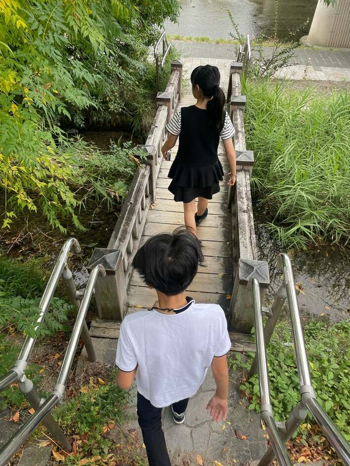 また、風情のある石橋を渡る、麗禾さんと新之助さんの後ろ姿や、