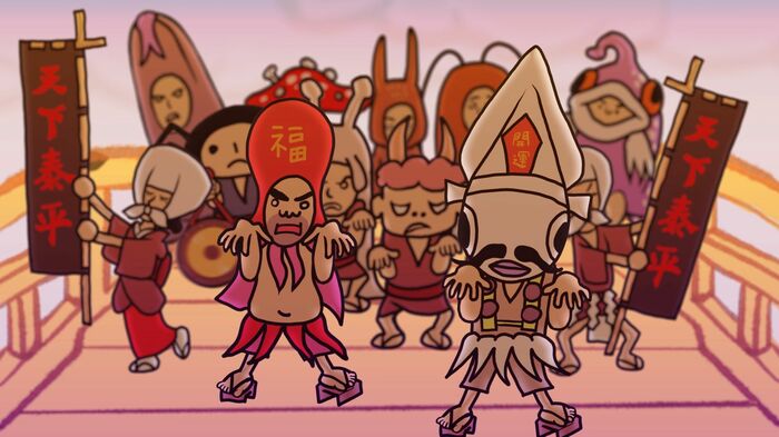 イカやタコなどの着ぐるみを着て「えーじゃないか」などと唱えながら踊り歩く一団を見た町人たちは、暗~い気持ちになるのだった。