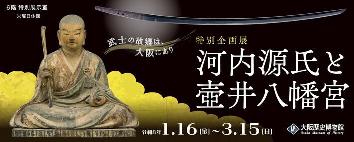 大阪歴史博物館では、令和8年(2026)1月16日(金)から3月15日(日)まで、特別企画展「河内源氏(かわちげんじ)と壺井八幡宮(つぼいはちまんぐう)」を開催します。