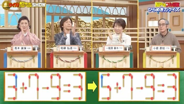 【おめざめ脳トレ】マッチ棒を1本動かして、正しい式にしてください!【『クイズ!脳ベルSHOW』より】