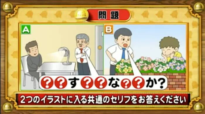 次は、共通セリフ問題。次の2つのイラストに入る共通のセリフを答えてください。