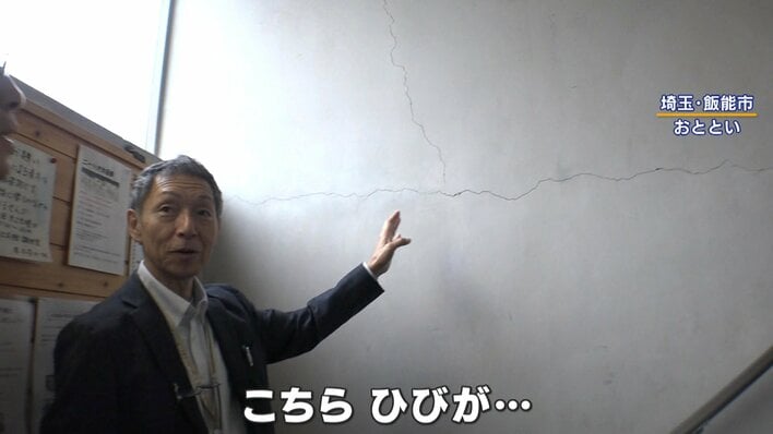 築53年の施設の壁には大きなひび割れが至る所に…。