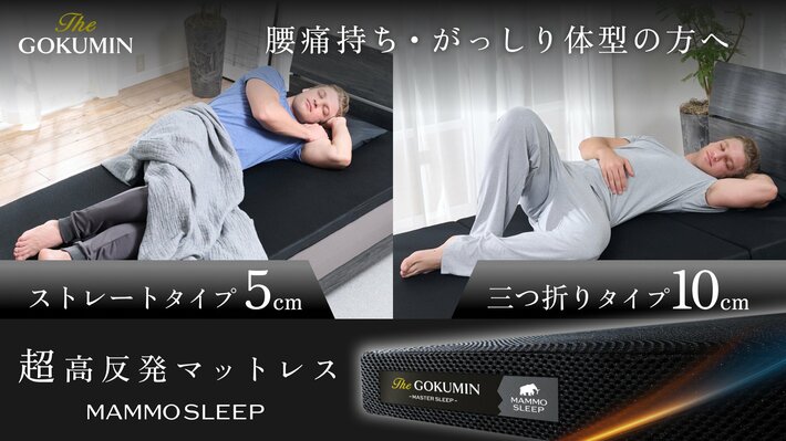 株式会社KURUKURU(本社:東京都中央区銀座、代表取締役:関沢康寛)が展開する総合寝具ブランド「GOKUMIN」は、2025年10月24日より、新開発の「MammoSleepマットレス」シリーズを2タイプ同時に発売いたしました。お使いのマットレスに重ねるだけで寝心地を改善できるストレートタイプと、しっかり支えて収納に便利な三つ折りタイプの2種類をラインアップ。どちらも300N×70Dの超高反発設計で、理想の寝姿勢をサポートします。