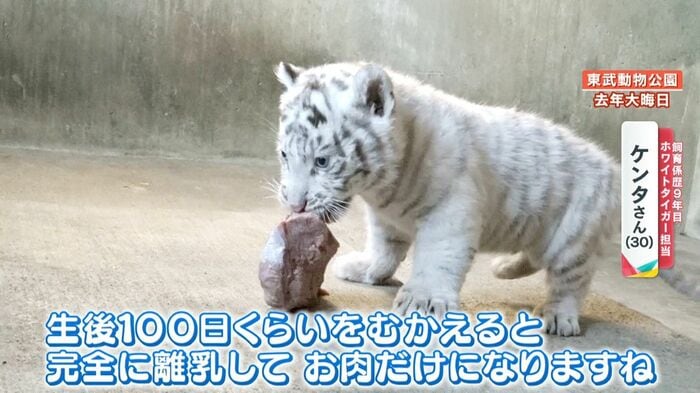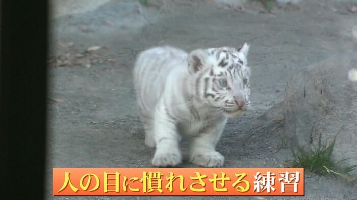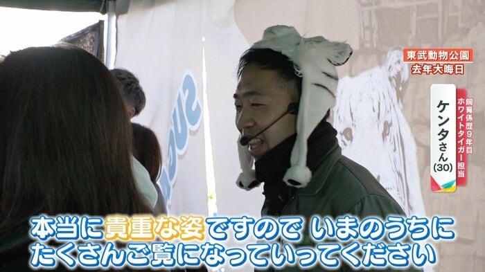 ホワイトタイガー担当・ケンタさん「赤ちゃんの時期っていうのも、本当にあっという間に過ぎ去ってしまいます。本当に貴重な姿ですので、いまのうちにたくさんご覧になっていってください」