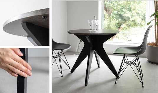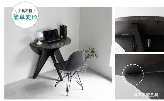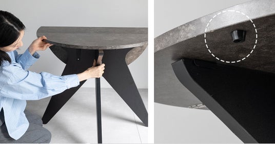 天板裏のコの字型金具に固定するだけ。シンプルな構造で、どなたでも簡単に折りたたむことができます。工具不要で変形できますので、その日の気分で気軽に使い分けが可能です。