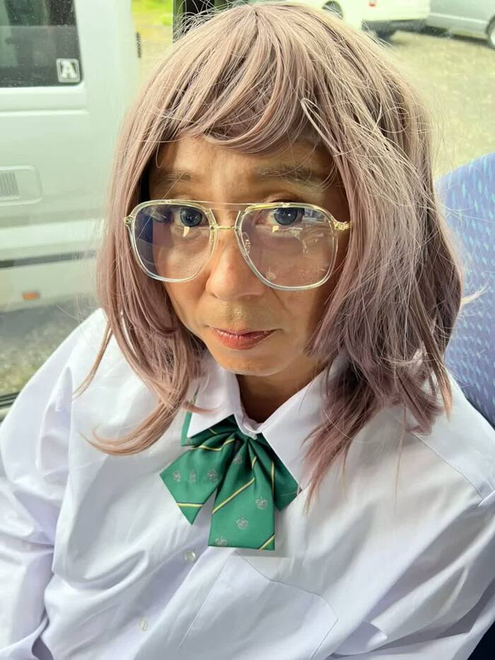 有吉さんは、制服にルーズソックスのメガネギャルで登場し、自ら「(名前は)HANAKOで~す!お父さんは、鶴瓶師匠です。楽しい~!!」とノリノリの様子。