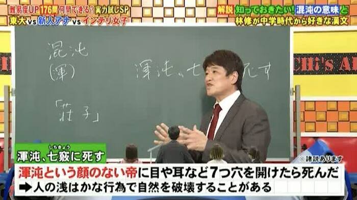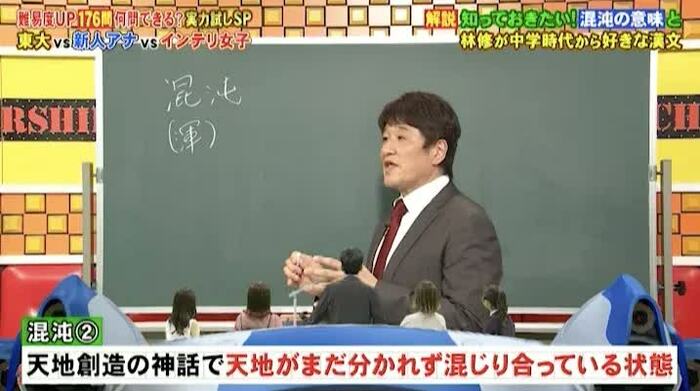 「混沌(こんとん)」という漢字を書く問題でも、林先生は言葉の意味を解説してくれました。