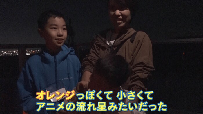 なんかオレンジっぽくて小さくて、アニメの流れ星みたいだった。