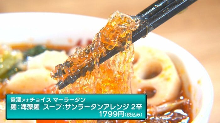 宮澤アナは、海藻麺に酸辣湯アレンジのスープを選択。具材と合わせて1799円になりました。