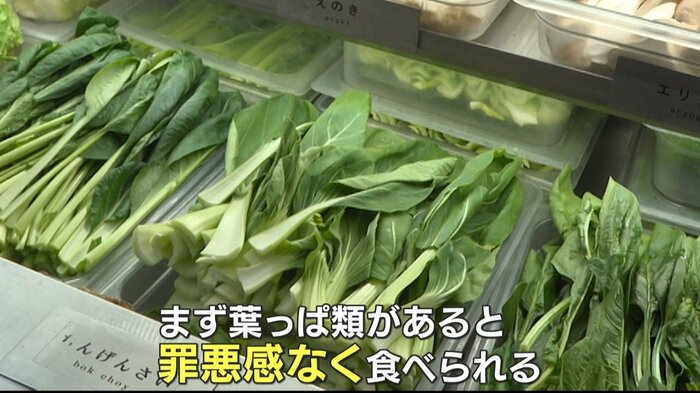 どちらかというと火鍋に近い物になる。葉っぱ類とかあると罪悪感なくたべられるかなと思うので。(私は)歯ごたえがシャキシャキしている、空心菜が好きなのでいつも選んじゃいます。