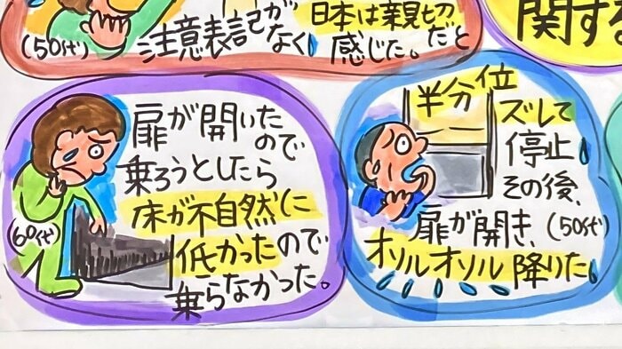 「扉が開いたので乗ろうとしたら床が不自然に低かったので乗らなかった」(60代)