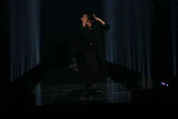 そこから曲がかかると、20秒ほど前衛的なダンスを披露し、そのままスポットライトに照らされ、客席へと降りていきました。