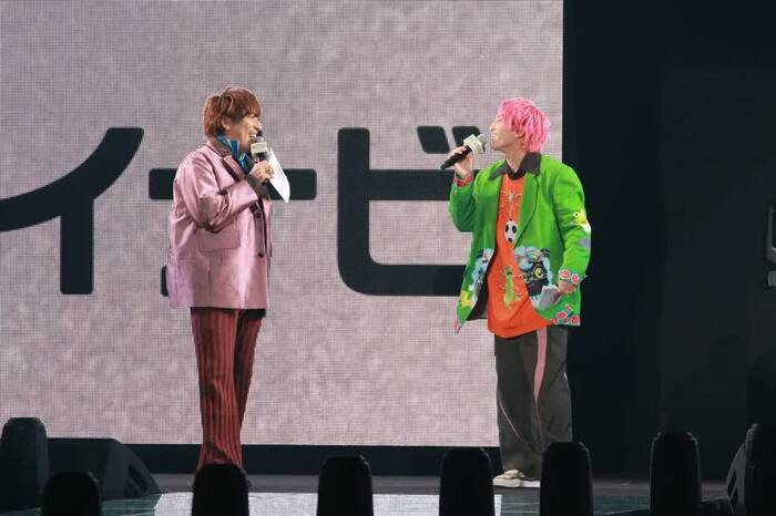 観客の中に、「お疲れ様!」と書かれたメッセージを見つけると、「何とか最後まで走り切って、皆さんと“チャライ”を歌えました。うれしい限りです!」とコメントし、りんたろー。さんは「“サライ”ね。“チャライ”なんてないから!」とツッコミ。