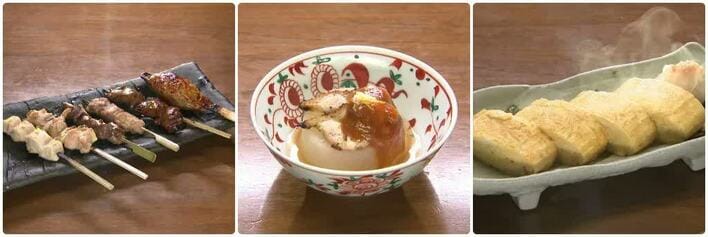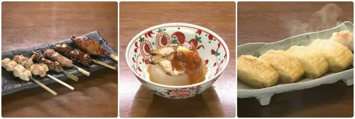 炭火でじっくりと焼き上げた焼き鳥 六本コース(1600円)は、ふっくらとした食感とジューシーさが特徴の鳥取産大山どりを使用。ゆず味噌鳥大根(580円)は、かつおだしで炊いた大根にあぶった大山どりを添え、ゆずのしぼり汁と仙台味噌を合わせたあんをかけた一品で、お酒にピッタリ。ほか、だし巻き卵(580円)をいただき、誠鏡(日本酒/780円)で乾杯。※価格は、すべて税別。