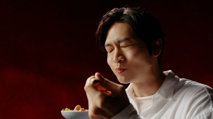 撮影開始から終了まで、何度もおいしそうに『こくうまキムチ』を頬張り、辛さの中にあるコクや、ほかの食材との組み合わせによって生まれる驚きを巧みに表現したそうです。