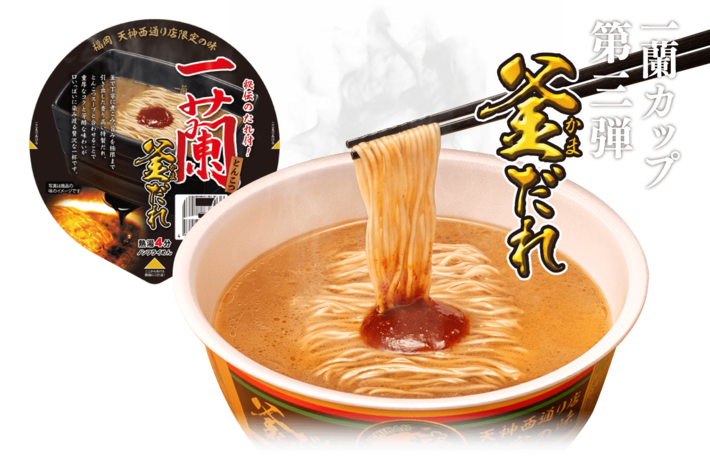 一蘭 天神西通り店(福岡)限定の味「釜だれとんこつ」が、ついにカップ麺で登場!特製の「釜煮こみ焼豚」から生まれた旨みたっぷりの煮汁をもとに、スープ職人が幾度もの試作を重ね、香り高い特製の「釜だれ」を完成させました。