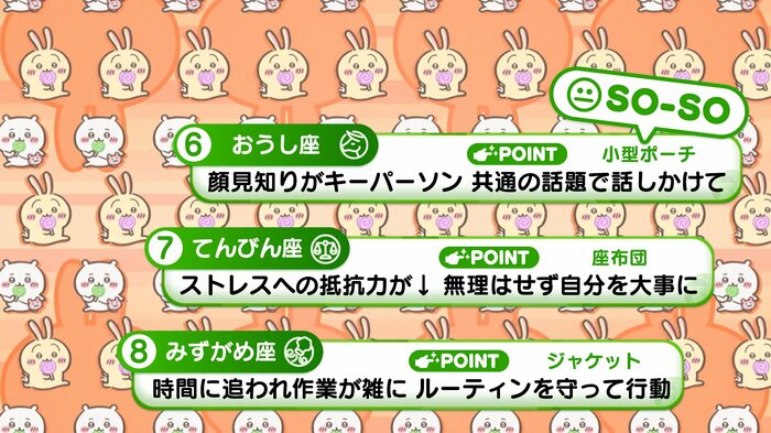 『めざましテレビ』で放送中の「ちいかわ占い」 テレビ放送がない日はお休みで、月~土:朝7時以降に更新予定です。