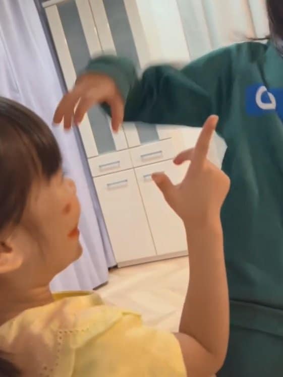 そんな可愛すぎる「ヨンヒ人形」の背後には、2人のお姉ちゃんの姿が。ゲームの参加者が着ていた緑色のジャージを着用し、瑛茉ちゃんにゆっくりゆっくりと近づいているようです。