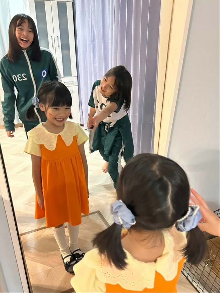 子役の倉田瑛茉ちゃん(5)の公式インスタグラムが2025年10月27日に更新され、2人のお姉ちゃんと『イカゲーム』の仮装をした姿を披露しました。