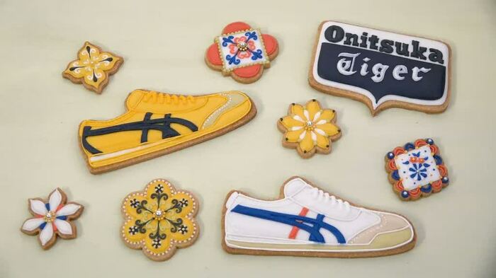 ロンドンに帰国すると、日本のファッションブランド「オニツカタイガー」からの依頼を受けコラボクッキーの試作を作り、クッキーアートを再開することに。