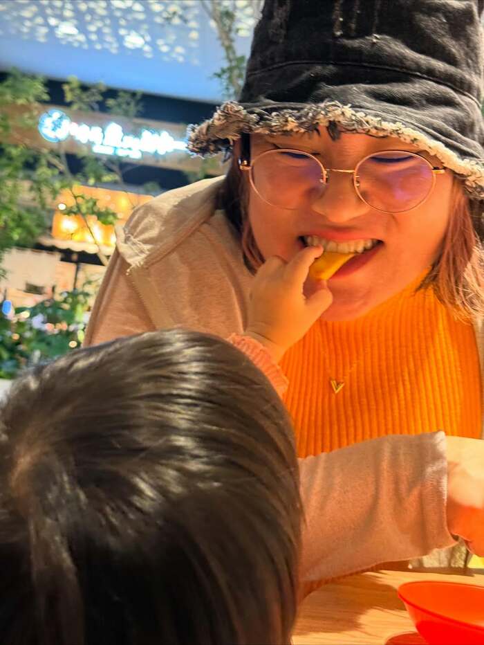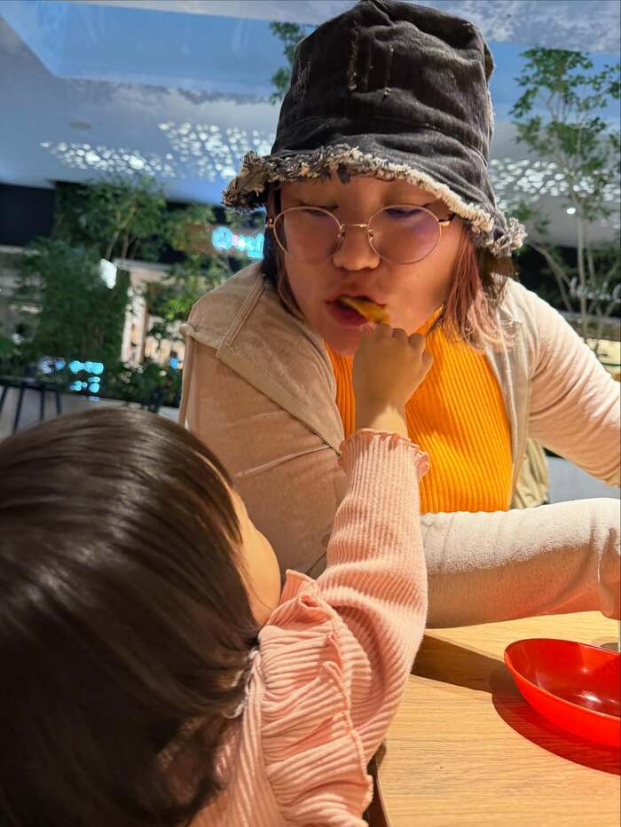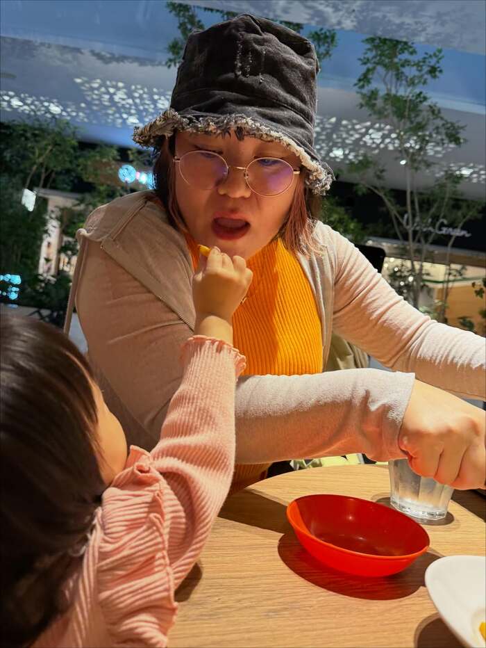そして、“ママにごはんをあげる”という娘のかわいらしい行動は、おでかけ先でも発動!