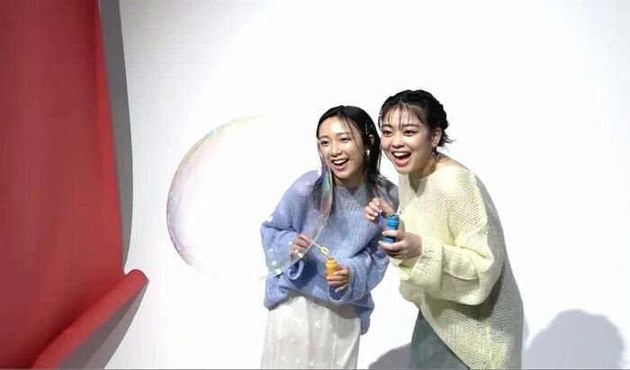 杉原:そもそも、スタッフさんが大きいシャボン玉を作ることが大変で。できたらできたで「今!」みたいなタイミングで入るんですけど、私たちの息づかいや、ちょっとした風で割れちゃうっていう(笑)。