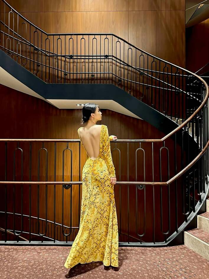 東京国際映画祭に出席したときの美背中際立つタイトドレス姿を公開しました。