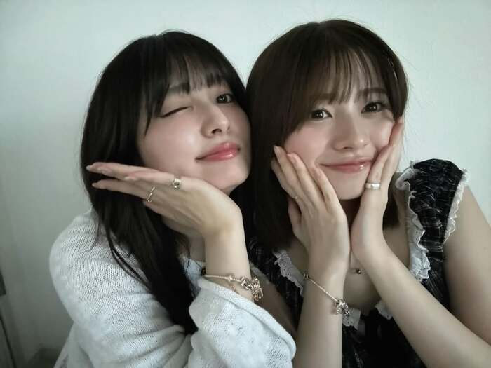 写真を見ると、ウインクをしながら顎に手を添える吉川さんに寄り添う、両手を頬に当てた桜田さんの姿が収められています。2人とも指や手首にアクセサリーを付けていて、なんともおしゃれなスタイルに。