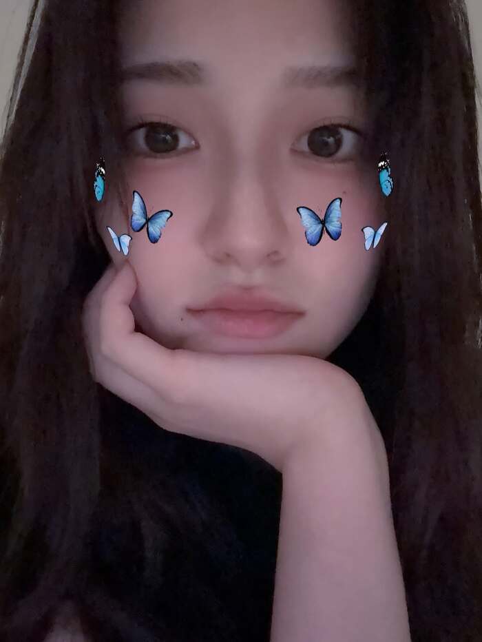 そこには、頬に淡いカラーの蝶々のエフェクトを付けた、オフ感あふれる吉川さんの姿が。