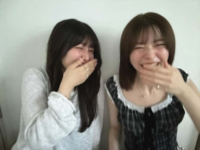 手ブレショットでは、2人そろって口元に手を添えながらケラケラと笑っています!