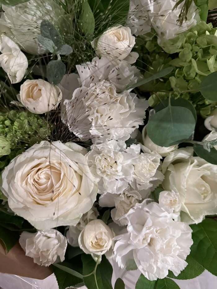 さらに、プレゼントでもらったのでしょうか。真っ白な花束も公開しています。
