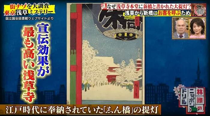 1月29日(水)放送の『林修のニッポンドリル』では、人気企画の「街ナゾ」で東京・浅草を特集。地元住民も知らない様々な謎を解き明かすべく、ロッチが浅草へ向かった。