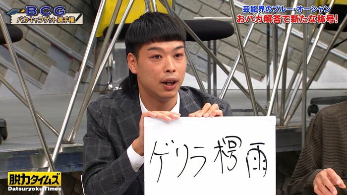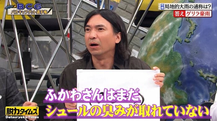 河野さんの「ビッグ雨」という解答には、「おバカですねぇ」(キャスターアリタ)、「力強いし、真っすぐだし」(渡辺)、「めっちゃいい解答」(エース)と高評価が。