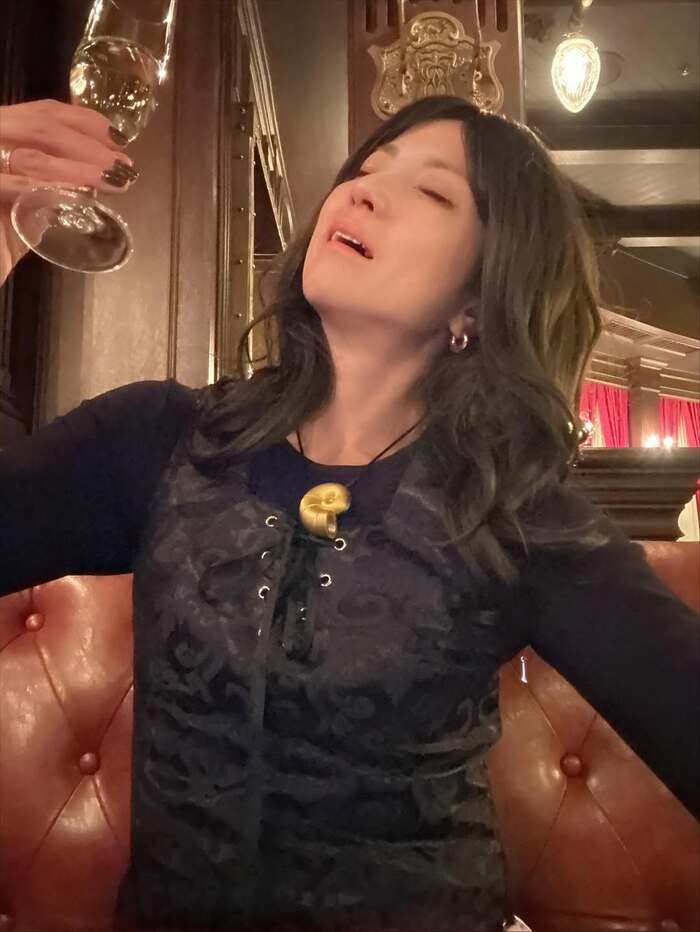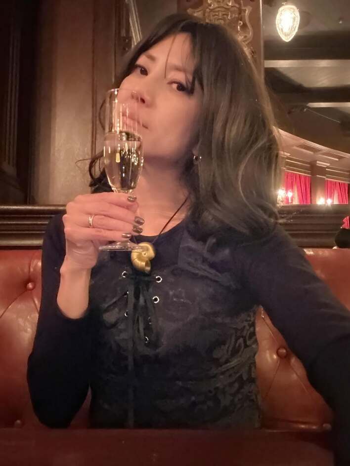 胸元に、ひものリボンをあしらった黒のトップスに、大きな渦巻き貝のペダントをつけたhitomiさんは、「なんとなく1日ヴァネッサの様に振る舞ってみました」とつづり、シャンパングラスのような背の高いグラスを顔の前で持ち、頭を少し後ろに反らして流し目でカメラを見つめた姿や・・・