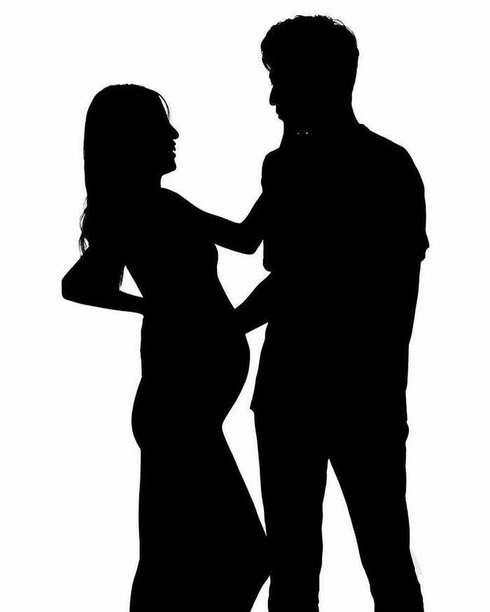 岡副さんと夫の蒲生さんが黒のシルエットになったマタニティフォトなどが投稿されています。