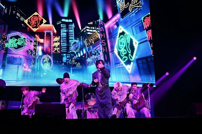 続く『乱心-RANSHIN-』では、キレキレのダンスと高速ラップも披露。「調子はどうだい!」と声をかけて会場をあおりながら、続いて『COMIC』と曲をコールして勢いそのままにダンサンブルに駆け抜けます。熱量の高い歌と激しいダンスでテンポも上がり『EYE Shadow』へ。