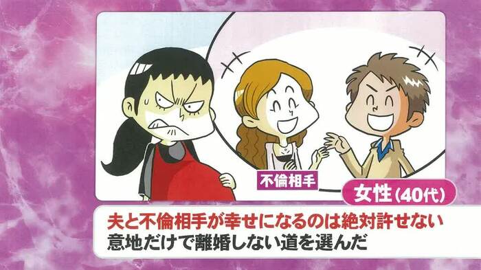 また、「夫が不倫相手と幸せになるのが許せないという意地だけで、離婚を選ばなかった」という40代女性のエピソードも登場。