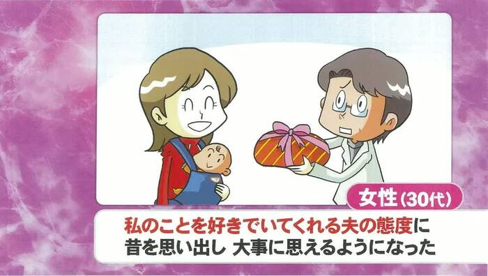 そこで紹介されたのは、30代女性のエピソードだ。彼女は妊娠中に不倫されたが、出産後、夫が自分を思ってくれる行動が増えたので、関係を修復することができたという。