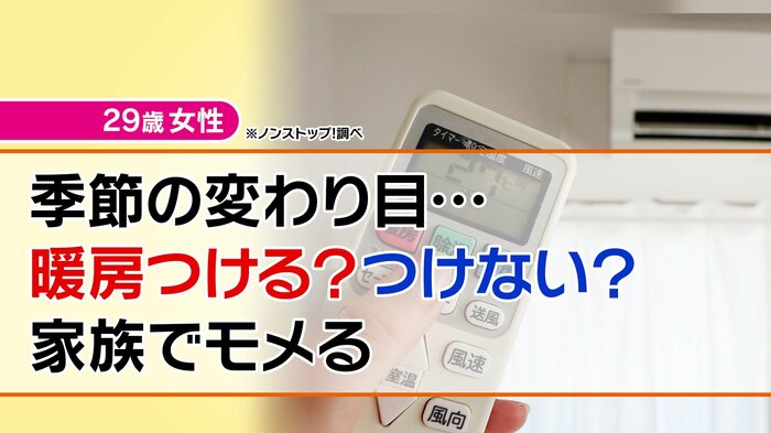 「家族が寒がりで暖房を付けているのだが、自分には暑い」という街角インタビューの声には、千秋さんが「幼い頃は父と、結婚してからは夫と、エアコンを付けたくなるタイミングが違う。この問題は一生続くのかも」とポツリ。