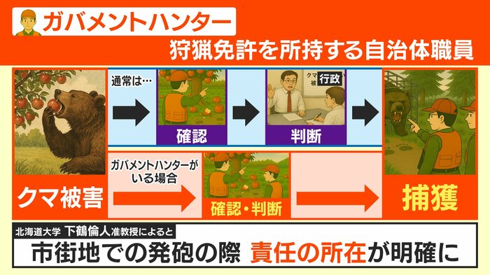 ガバメントハンターが現場に向かうことで、発砲が必要かどうか、スピーディーな判断が可能になり、責任の所在も明確になるといいます。