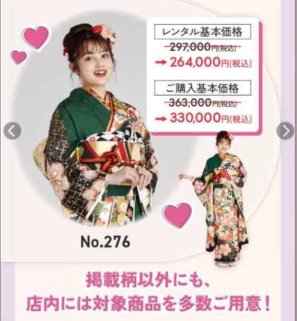 ─ 来店でもらえるコスメ・お仕立上りレンタル39,800円セットなど、お得すぎる企画を展開! ─